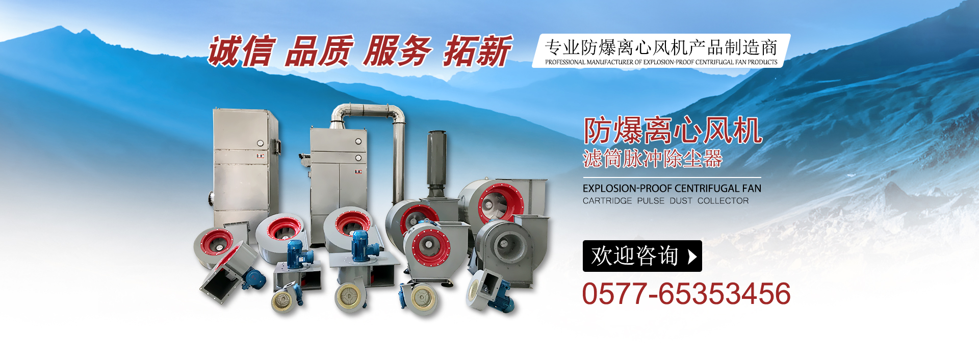 主導產品分為二大類:A 除塵設備(靜電高效除塵器,氣箱脈沖除塵器,離線脈沖袋式除塵器)等。B 模具壓鑄防爆風機鋁葉輪系列,產品廣泛應用于:燃油燃氣鍋爐旁,高濃度粉塵車間,油庫,儲氣站,易爆物品存放倉庫,并有防爆要求的場合安裝使用,可輸送且有易燃易爆和易揮發性的氣體的通風換氣用。并可按客戶要求設計定制。